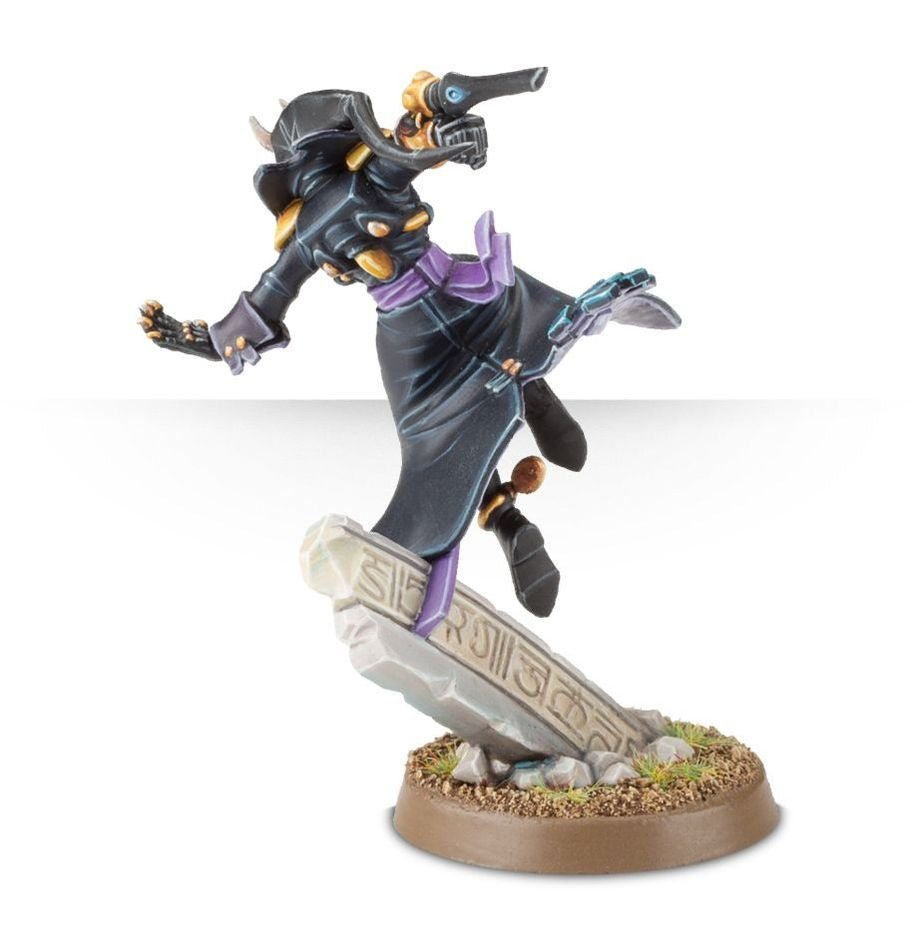 This multipart plastic kit builds a Solitaire, a vicious Harlequin for your Aeldari armies in games of Warhammer 40,000. Advancing across the battlefield in a blur, they are ideal for ripping apart enemy units and characters in melee. The kit comes with the option to add a holo-field effect to the Solitaire's jacket.