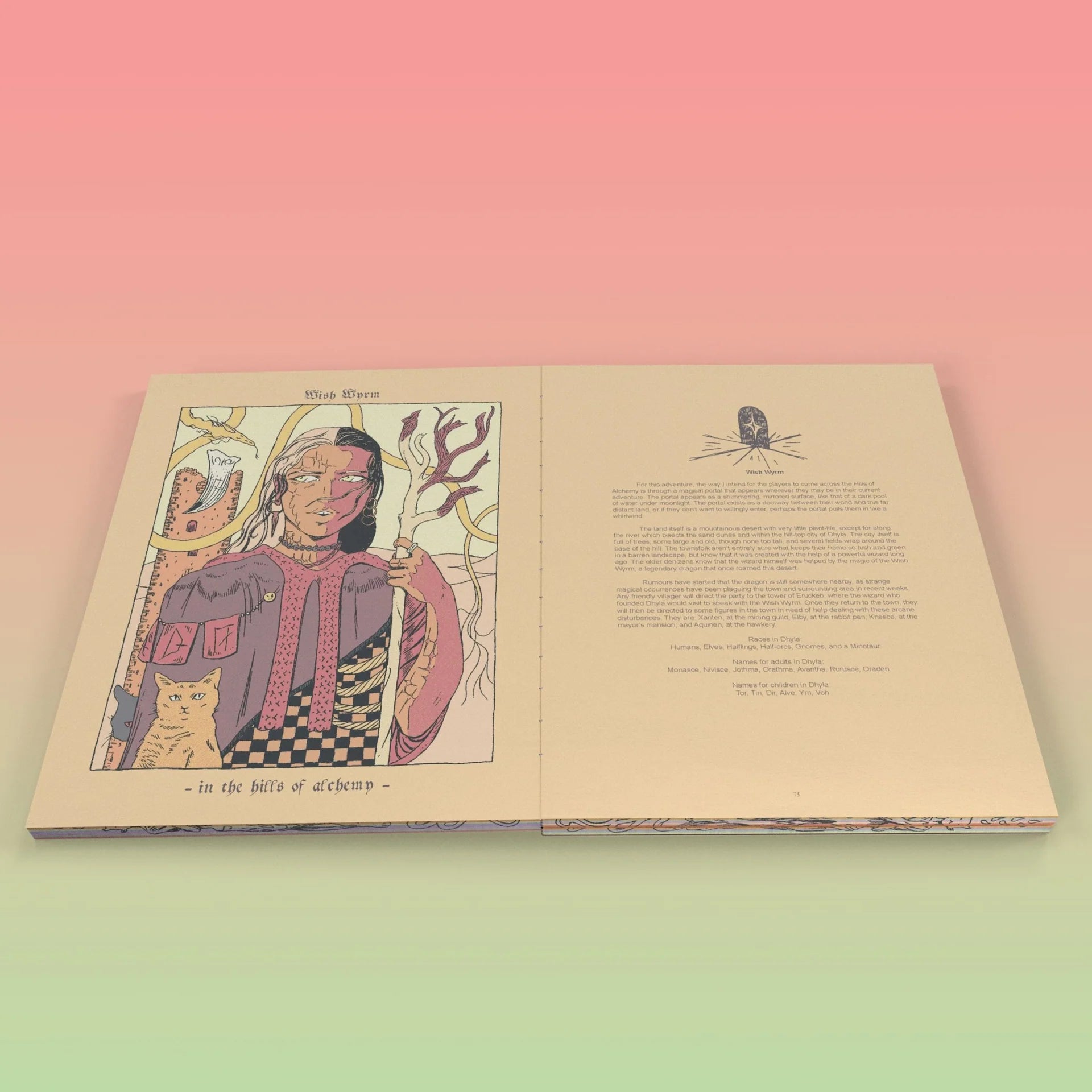 A mist of brackish water blows by as you walk along the western coast of your homeland, the island continent Oræd. You close your eyes and imagine packing your belongings and setting sail, to discover the hidden Snake Elves who no outsider has seen, or to visit the Wish Wyrm in the Hills of Alchemy and ask for a boon.
