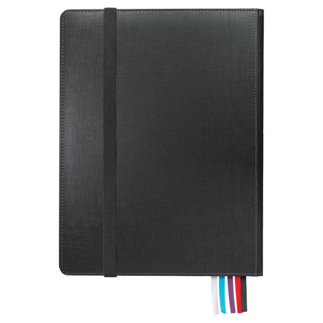 Cast a ward of protection on your treasured D&D source books with the Premium Book Cover for Dungeons & Dragons. The textured leatherette cover features a rigid layer of protection for both the front and back of the book, while remaining flexible at the binding for ease of use. Simply slip the back cover into the back inner pocket and use the front elastic strap to either hold the front cover open, or secure the book closed by pulling it over the back cover. Easily reference important pages marked by 5 attached and color-coded ribbons (black, red, blue, purple, & white). Premium Book Covers pair beautifully with other Ultra PRO premium accessories for Dungeons & Dragons. Each book cover features embroidered labeling on the binding as well as the classic D&D ampersand on the front cover, each complimented by color-matched stitching. Sized for both vintage and current size books, this is the ultimate UPgrade for any party member, DM, or D&D enthusiast