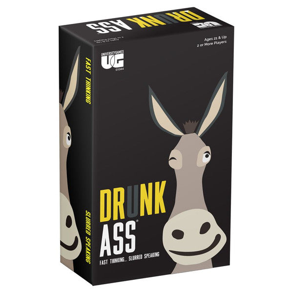 Drunk Ass is the classic team trivia game that will keep you laughing and drinking all night long! This game will test your wits before, during and after you toast with your favorite beverage. Loaded with 400 different questions and challenges, all you need to play are glasses, some liquids to imbibe in and a few good friends.