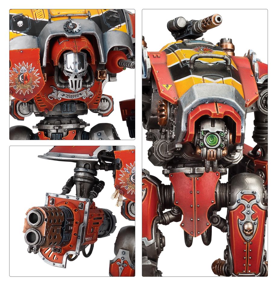 Imperial Knights are colossal suits of armour bristling with heavy weapons, employed by noble houses of the lmperium. They can lay waste to entire enemy armies, particularly when they come together in groups known as lances.