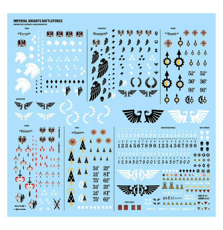 – 1x Imperial Knights Transfer Sheet containing 647x transfers